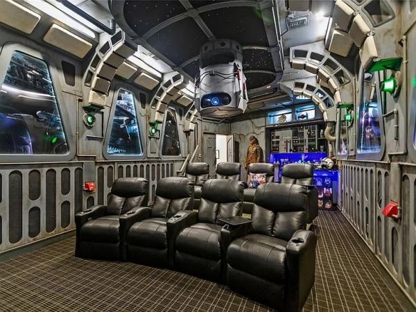 Zillow Gone Wild points us to this mansion located in Disney World (TIL: you can live at Disney World) that is decked out for a committed and extremely wealthy Disney fan. The Star Wars-themed home theater gives the impression that you are watching the screen from inside the Millennium Falcon.