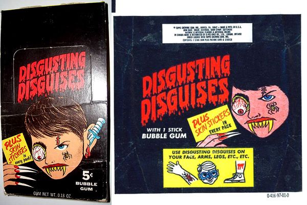 The Topps card company, makers of fine baseball cards and collectible card series such as the Garbage Pail Kids, released a Halloween themed series wax pack in 1967 called Disgusting Disguises.