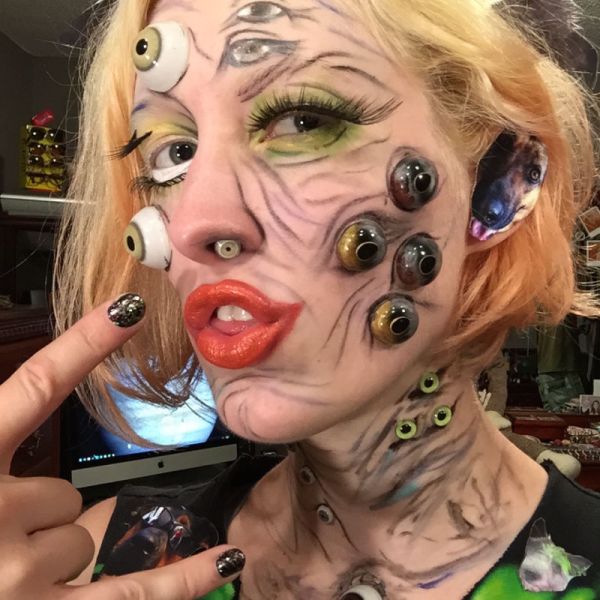 Jennifer Culp designed a Halloween face based on Google’s DeepDream technology, which produces nightmarish images by finding and enhancing any hint of pareidolia in an existing image. Culp imitated DeepDream images you’ve seen by adding eyes, plenty of them, all over her face, on her neck, and even in her ears and nose! Top the nightmare with a crown of images of her dog, and you’re ready for Halloween. Not only do we get the bizarre result, but she’s posted a tutorial just in case you want to duplicate the look yourself. And if you think this image is disturbing, Culp then ran a picture of her finished makeup through the DeepDream algorithm. You’ll have to go to the tutorial to see that. -via Boing Boing