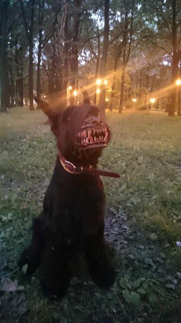 Russian guitarist Alexey Kurulyov shared a picture of his dog wearing one. I’m sure he’s a bundle of love most of the time, but wearing this muzzle, he’s a hellhound straight out of your nightmares. -via Geeks Are Sexy