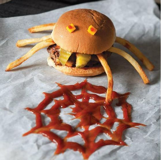 Celebrate magazine shows you how to make spooky burgers that it calls Spider Sliders. The recipe calls for the conventional components of cheeseburgers as well as fries. Going beyond that, I would suggest adding an actual spider or two for authenticity.