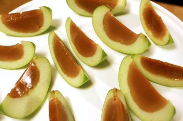 Obviously the apple is just sliced up fruit, but the caramel Jell-O recipe is a more complex and includes caramel hot chocolate mix, condensed milk, caramel sauce, Knox, sugar and vodka. I think I'll have three -entire apples that is.