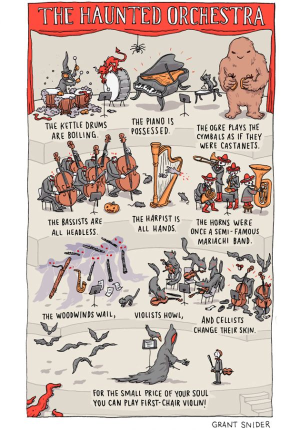 Here's a little ditty by Grant Snider for those classical music lovers out there...a haunted orchestra playing a tune that's sure to leave scars on your eardrums!