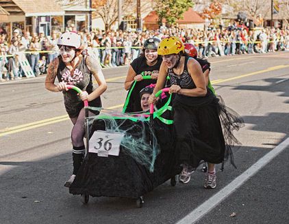 Folks who live in Manitou Springs, Colorado have a strange way of celebrating Halloween each year- they dress up and race decorated coffins down the street.