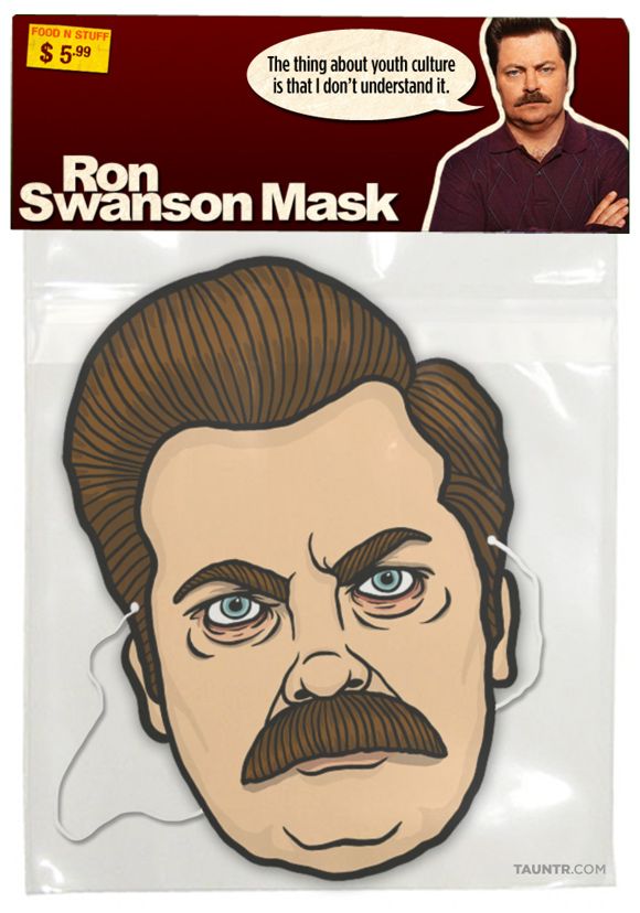 Anybody who is interested in channeling Ron's macho manliness is encouraged to hit the link below and download a Ron Swanson mask, which is perfect for asserting dominance over other living creatures, barbecuing and all kinds of woodworking.