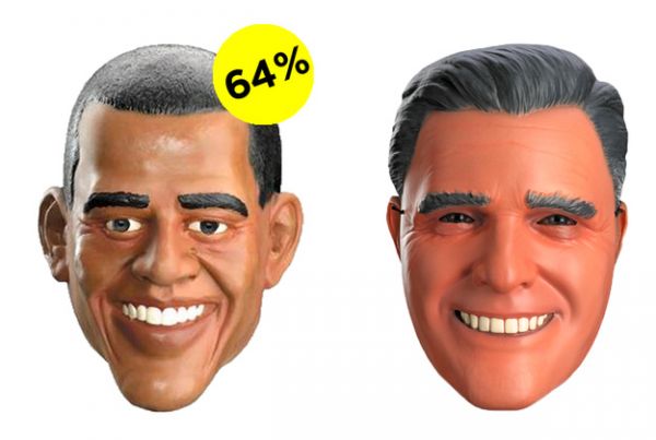 Does the fact that Obama mask sales far outnumber those of the Romney mask prove that he'll be re-elected come November? I guess we'll just have to wait and see...