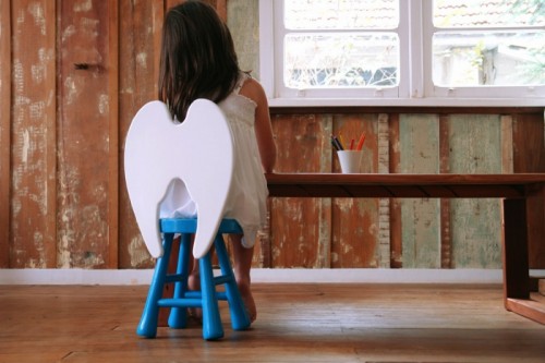 Furf, a Brazilian design studio, came up with this children's chair that features angel wings. It would be ideal for a time-out chair. http://www.coroflot.com/public/image_file.asp?portfolio_id=5364187&individual_id=293647&s=0&v=4&a=4&t=0 -via NotCot | Studio Website | Photo: Furf