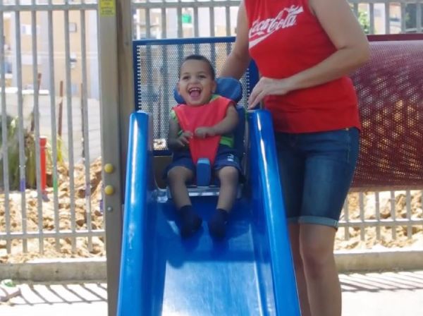 Ali has cerebral palsy and so can't support his own bodyweight while going down a playground slide. So Goren Harari and his colleagues at the Holon Institute of Technology in Israel designed this seat that lets him safely use a slide.