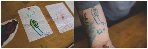 That's Keith's son applying the latest doodle tattoo to his father's arm and loving every minute of it. It looks like this endearing project may lead to a career in tattoo art for the budding artist, which is quite possibly the coolest way to become a tattoo artist ever!