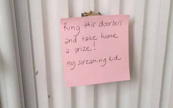 This collection of notes posted on the front doors of exhausted women everywhere is full of sage reminders and cautionary tales. If you wake the child in the name of attempting to sell mama some vinyl siding, you may be diving into a sea of regret the likes of which you stand no chance of treading. Ring at your own risk. (Unless, of course, you have cookies.) See more funny notes from tired moms at 22 Words.