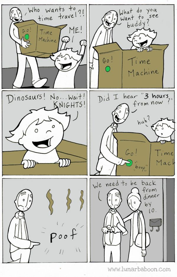 But, to be practical, you're more likely to use the time machine as a free babysitter that is available whenever you need it.