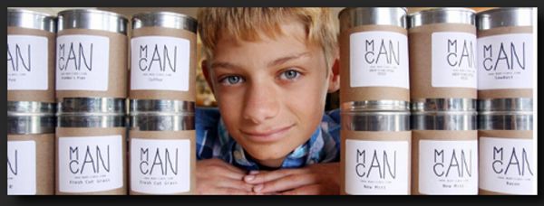 Hart Cain of New Philadelphia, Ohio, pictured above, was thirteen years old in 2010. At the time, his sister was selling candles for a school fundraiser. Hart didn't like the girly scents of his sister's wares. It made him reflect on candle scents that would appeal to men. He went on to produce the candles, called "man-cans," which feature scents such as leather baseball mitt, gunpowder, freshly cut grass, bacon and pizza.