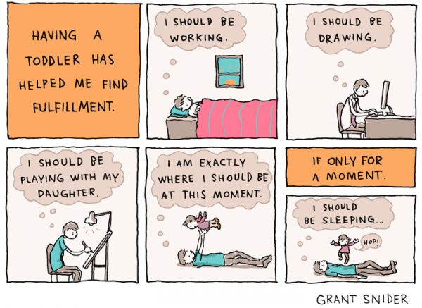 Someone once told me it’s a good thing toddlers are so cute and sweet and loving because that’s what keeps you from killing them. Grant Snider of Incidental Comics has an 18-month-old daughter and is well aware of the extremities of that difficult, dangerous, but oh-so-memorable age. He created this wonderful comic for Fathers Day. You can buy it as a poster. -via Laughing Squid