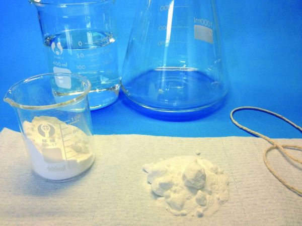 When the solid baking soda (sodium bicarbonate—a base) mixes with the liquid vinegar (acetic acid—a weak acid), a chemical reaction occurs and forms a gas (carbon dioxide). All those bubbles and foam? They’re evidence of gas, and as the gas expands, it looks for an escape route for all that built-up pressure. So the foam and bubbles rise until they flood out of your bottle’s opening.