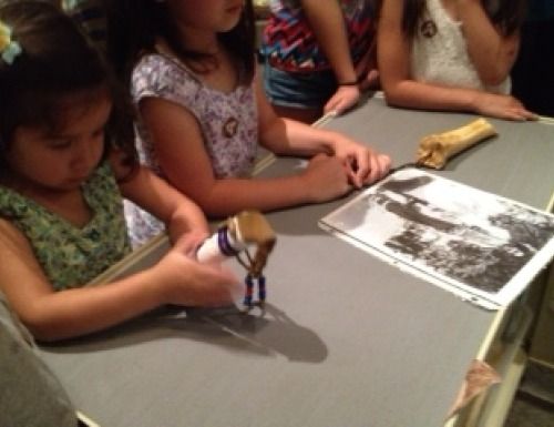 Each touch cart is themed and houses several items for the kids to hold and try on. On our tour, the kids learned about Mountain Men, Native American Indians, and Cowboys. They were able to touch animal pelts, view artifacts up-close, and try on a few pieces of clothing.