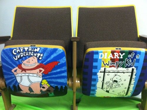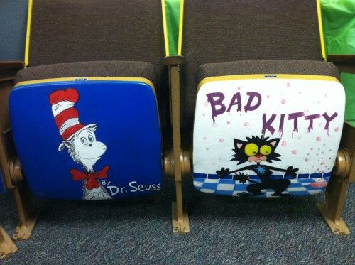 Travis Jonker and his team work at an elementary school library. They had some old auditorium seats left over from renovations. They were functional as seating, but Jonker and his co-workers turned them into advertisements for works of children's literature. Click on Continue reading to view more.
