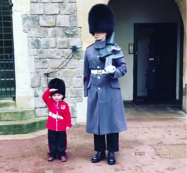 When Marshall Scott turned four years old, his mother Imogen Echo Scott took him to see the Changing of the Guard at Windsor Castle. It was a big deal for the youngster, who is a fan of the guard and even has his own summer guard uniform. The squad never broke rank, but did notice the child. After they entered the guard room, one guard came back to pose for a picture with Marshall.