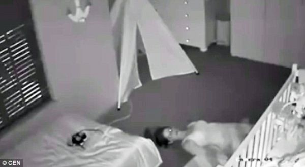 Tyrone spotted his wife Caryn doing some sort of spooky crab crawl across the nursery floor after spending hours getting their son Brody to sleep, so he shared the video on Facebook with this caption: