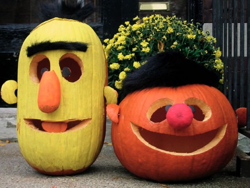 Angie Naron spotted this adorable pair of pumpkin carvings in Chicago in 2009. They're simply perfect.
