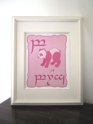 Although, like some sensible parents, I'm teaching my daughters Klingon and Ferengi, others prefer the more traditional route of Elvish from The Lord of the Rings. The age of Elves has passed, so it's sort of like learning Latin. Still, if that's what you're into, Etsy seller tiedyejedi has nursery decorations to get your tyke started on the Elvish alphabet.