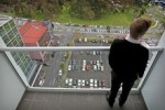 He smashed through the carpark roof, cladding and metal webbing before dropping another two storeys to a concrete floor.