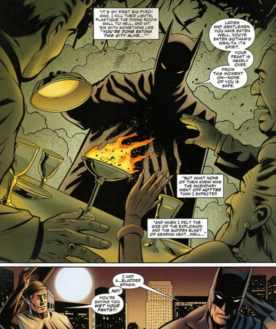 Unfortunately, a creator -- any creator, in any creative field -- has to recognize his or her limits, and if he can't, that's what an editor's for. And you eventually come to a point where either the editor has to look at something and decide that it's an unpublishable mess or the creator has to take a step back and ask himself if he really wants his contribution to a 70-year legacy be a story where Batman gets high and pisses himself.