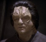 Nonetheless, my favorite episode is Season 1's "Duet", not a story from the Dominion War narrative. A Cardassian war criminal passes through the station and is promptly locked up by Major Kira. Gul Darhe'el does not deny his actions, but joyfully boasts of slaughtering Bajorans during his world's occupation of Bajor. Yet as the investigation continues, his story begins to unravel. This is not Gul Darhe'el, but a mere military filing clerk who, overcome with guilt about his participation in war crimes, is pretending to to be Darhe'el. Aamin Marritza's hope is that by going on trial on Bajor, he will force the Cardassian people to come to terms with the atrocities they committed.