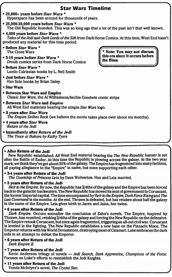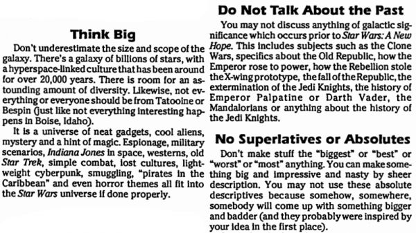 This extensive style guide was meant to give the West End Games team some parameters for what lore could be included in the game and some guidance on how to approach a Star Wars storyline.
