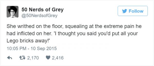 There are those who think geeks aren't very sexual, but the reality is that the average person just doesn't understand their special kinks. Fortunately for the geeks looking for hot reading material (and those looking for new pickup lines to catch the geek of their dreams), there's a Twitter account called 50 Nerds of Grey just ready to get you as hot and bothered as an overloaded server.