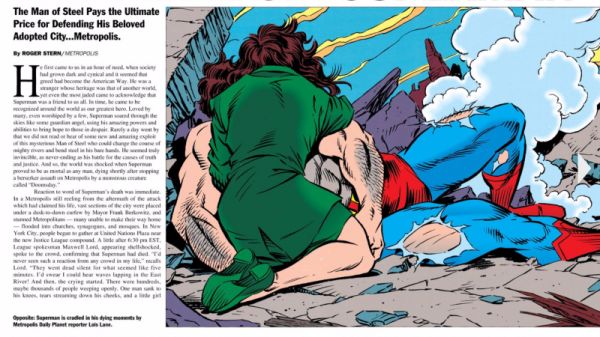 The magazine, which features a full article on Superman's final battle, funny letters to the editor and reviews of upcoming fictional movies, made real the idea of a world without Superman.