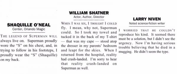 Their fears were reinforced by a special issue of Newstime which was released in May of 1993 as a fun way to make readers feel like part of the story as they read a magazine from Metropolis.