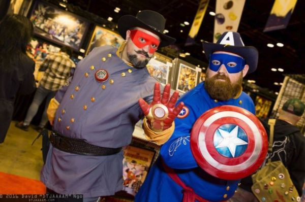 Professional cosplay photographer David Ngo snapped these two gentlemen at C2E2, an entertainment convention in Chicago. They're taking the title of the movie Captain America: Civil War very literally by portraying Captain America as a US Army officer and Iron Man as a Confederate Army officer.