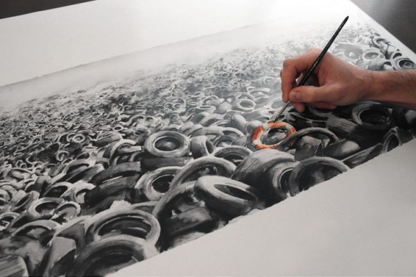 The desolate images of environmental havoc seen here are real—no CGI, no Photoshop, no illusions. It’s a simple mixture of art direction and the scourge of human waste. ‘This project was actually born some years ago when I painted ‘Heavy Sea’, a water-colour artwork featuring a lifesaving ring in a sea of disused tires. Later, during a voyage abroad, just some months ago, I found myself in front of that very same landscape. It was a poetic nightmare made real.