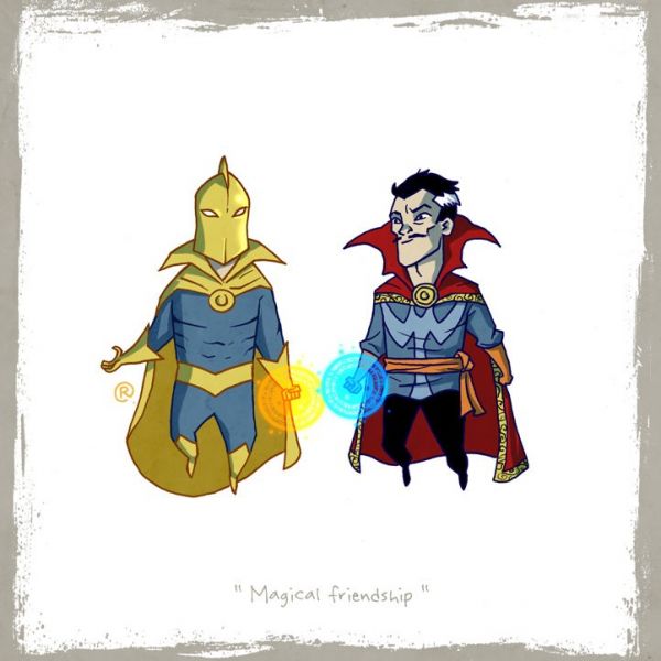 Darren Rawlings makes their equivalents meet up in his series "Little Friends", and even if you can't decide which character is cooler in each image you'll most certainly agree that Darren's drawings are quite charming!