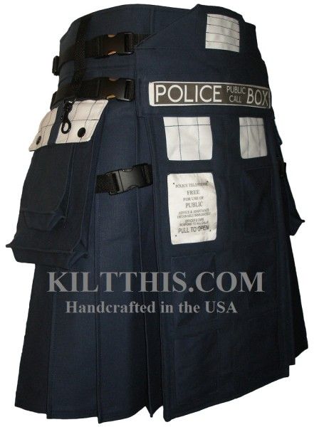 This is excellent! Besides being stylish, kilts are also practical wear as they permit natural ventilation into the, uh, Heart of the TARDIS. And there will be no need to go on a diet. No matter what you weigh, you'll look slimmer in this kilt by Kilt This.