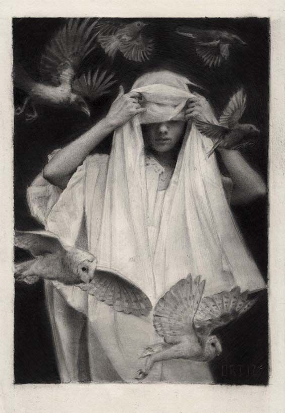 San Francisco-based illustrator Karla Ortiz is bewitching to watch while she's working, and this time lapse video allows us to take a look over her shoulder as she creates a classically inspired piece for her show "Omens", taking place at Thinkspace Gallery in Culver City, California from September 12th to October 3rd.