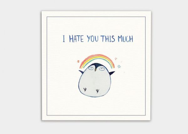 Killien's happily hateful postcards feature watercolor paintings of cute little critters delivering dark messages to your enemies, warming the heart of the hated before stabbing it with a snappy slogan.