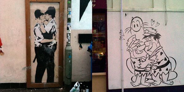 Butcher Billy has collected some clever cartoon parody art between the covers of a coloring book called Butcher Billy Bullies Banksy, and boy did that street art ever need a cartoon makeover!