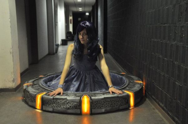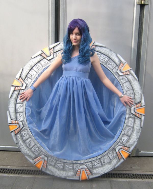 All 9 chevrons on this Stargate costume are locked and ready to transport you across the universe. The event horizon--which will kill you if you're standing in its way when activating--forms the body of this beautiful dress worn by Nyima-chan.