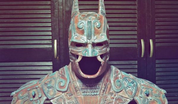 One of the artists, Kimbal, responded with this Pre-Columbian Batman inspired by Maya art and mythology. Appropriately, it references Camazotz, a Maya god that looked like a vampire bat.