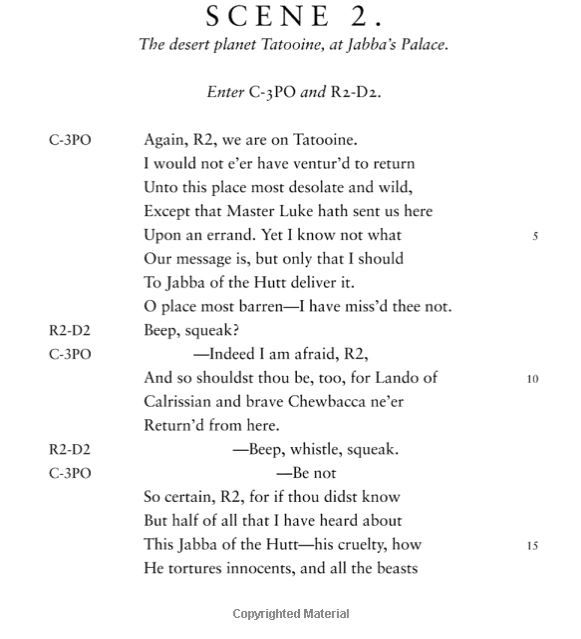 And gentlemen on Coruscant now a-bed shall think themselves accursed they were not here. Therefore do not miss the conclusion to William Shakespeare's magnum opus, Star Wars. His third play in the series, The Jedi Doth Return, is now available from Quirk Books.