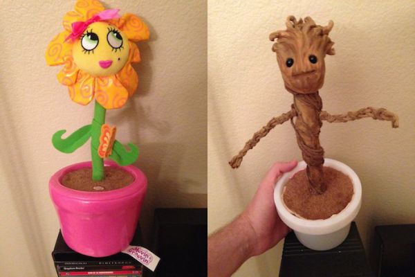 After seeing the film artist Patrick Delahanty wanted to bring home his own dancing baby Groot, so he picked up one of those annoying dancing flower toys and got to work on a custom Groot creation.