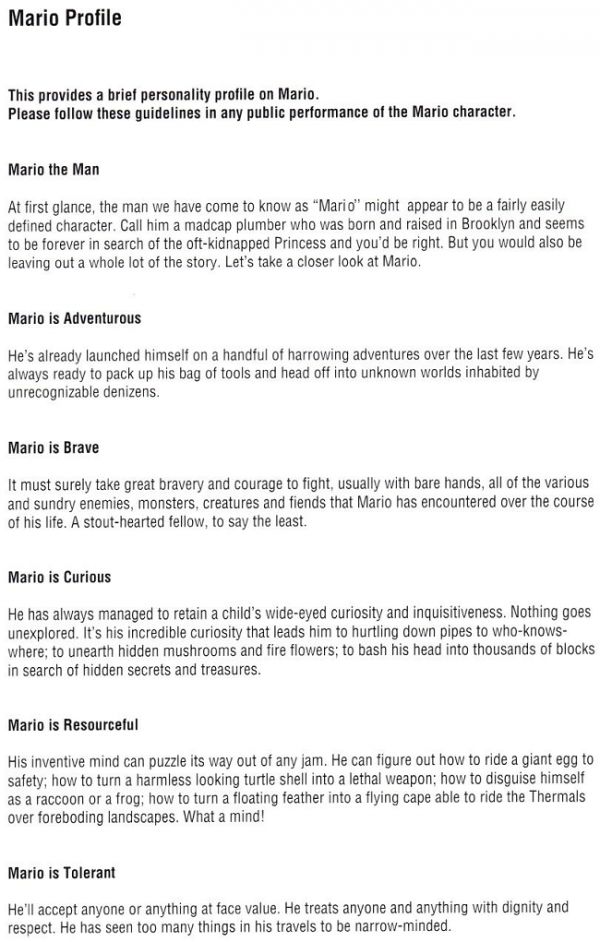 Lingering questions like Yoshi’s real name, Princess Peach’s magic power, and Mario’s personality profile were revealed in a guide that was "distributed to licensors so they’d better understand the characters before using their image", facts kindly shared via Twitter by Blake Harris, author of Console Wars.