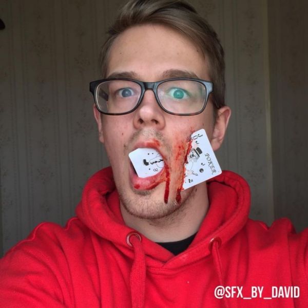 UK-based makeup artist David Harris creates special fx illusions that'll make you grimace and grin at the same time, and even though they'll make you feel sick they'll also put a smile on your face while you hurl.