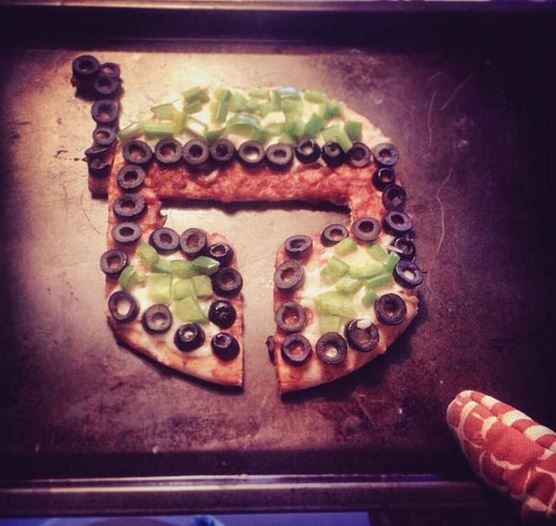 With a few bell peppers, olives, and the right shape, Wendi created a pizza that looks just like the helmet of Star Wars fans' favorite bounty hunter. Now it just needs to be slowly baked inside the oven for over a thous...