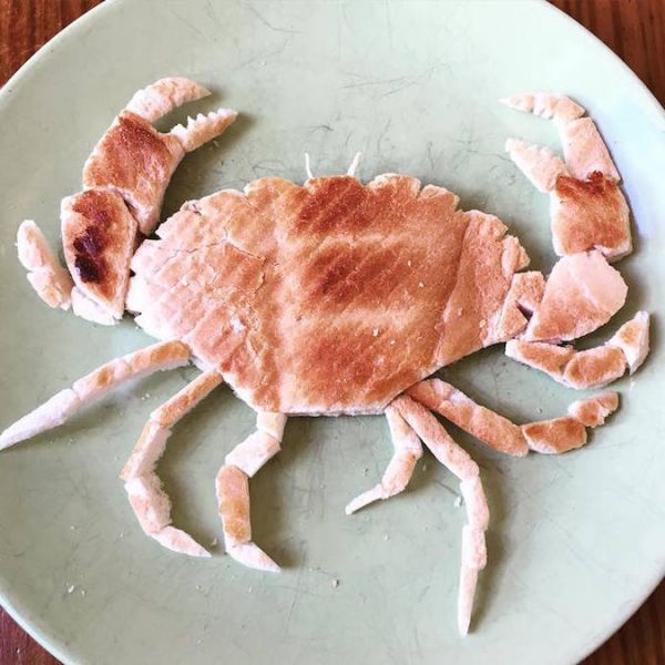 Now his daughter isn't stuck eating plain old toast in the morning, she's eating tropical islands, bread crabs, bungalows, sail boats and boom boxes, or the most meta of them all- the toaster made out of toast.