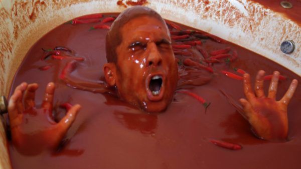 That means people like Cemre Candar must resort to doing stunts even the guys from Jackass weren't dumb enough to do, like bathing in a tub filled with 1250 bottles of hot sauce.