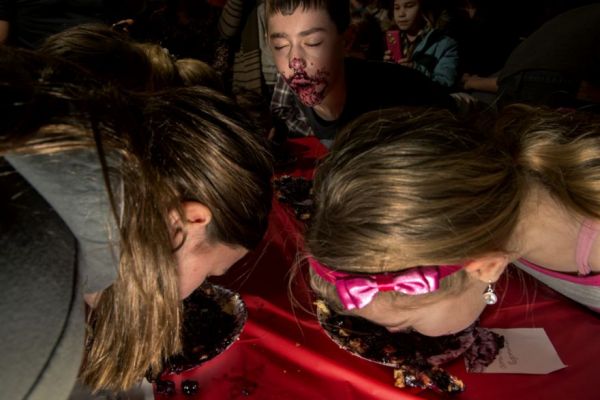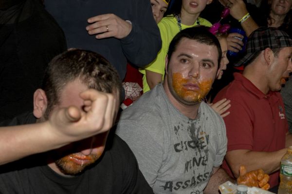 The images are captured at just the right moment, the contestants' faces frozen in horrifying expressions as the desire to win drives them to devour more than their neighbors.