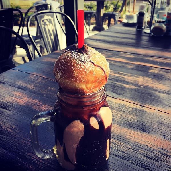 Something strange and wonderful is happening in Australia. A few weeks ago, the justifiably named "Freakshow" milkshakes surfaced in Canberra. Now the outbreak has spread to Sydney. Foodcraft Espresso and Bakery is offering what it calls the Tella Ball Shake. It consists of ice cream, milk, chocolate syrup, and an enormous donut filled with Nutella. You drink it by ramming a sturdy straw through the donut into the ice cream.