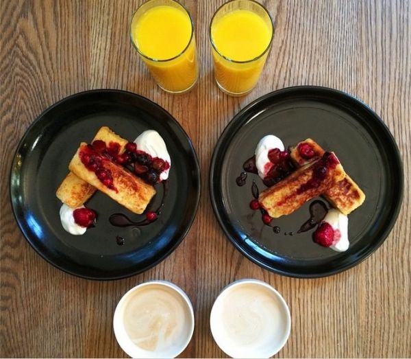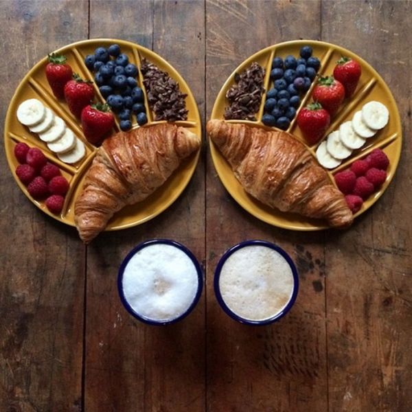 Londoner and Instagrammer Michael Zee, who uses the screen name SymmetryBreakfast, has been beautifully preparing and photographing breakfast for himself and his lucky boyfriend for about a year now. Even if, on some days, the feast is from a restaurant, it still gets the symmetrical treatment. The men certainly don't stick to basics for breakfast, eating meals traditional to countries all over the world. It's enough to inspire me to slice a banana into my Corn Flakes (if I even eat that morning)! Perhaps Michael will invite me over for breakfast some day? Of course, he'd have to let me bring a guest, or the symmetry would go right out the window!